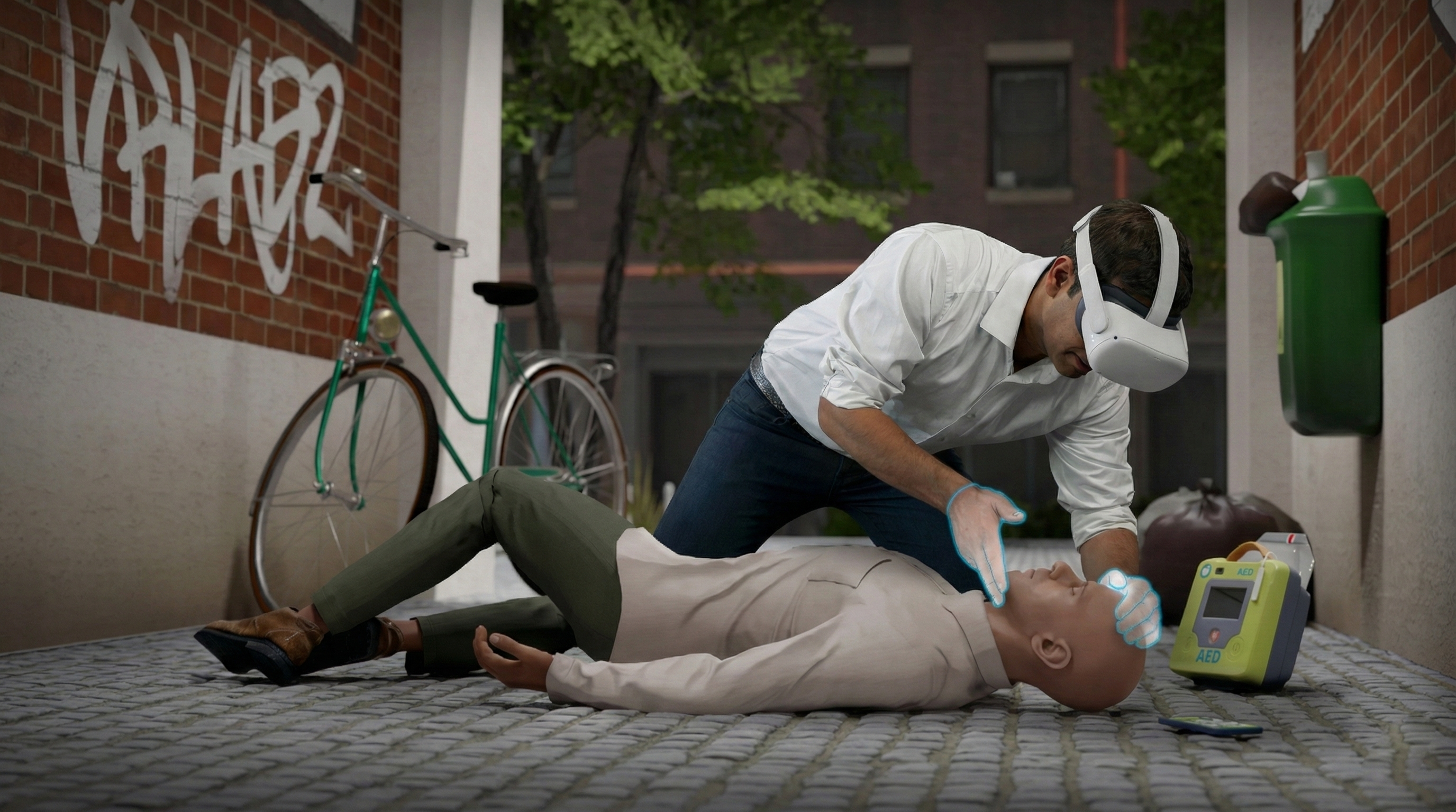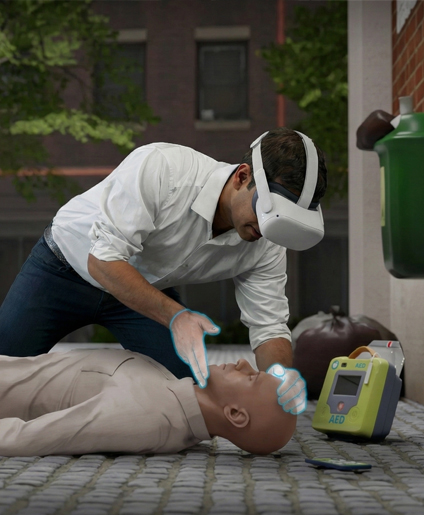 Hyper-realistic CPR training with expert-guided instruction, real-time feedback, and deep analytics inside an immersive VR environment.