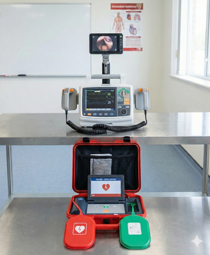 Medical devices, AEDs, Defibrillators & Video Laryngoscopes for hands-on training.