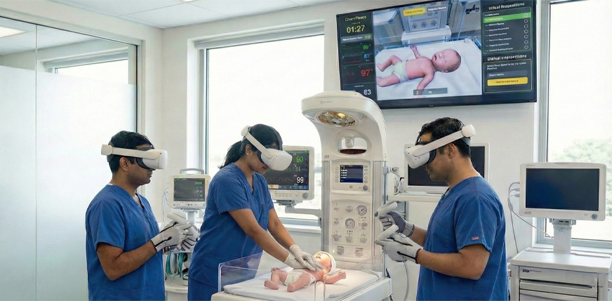 with virtual newborns and real-time decision-making support in fully immersive delivery settings.